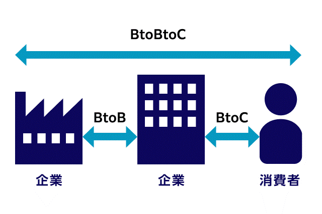 また、BtoBとBtoCを組み合わせた「BtoBtoC」のビジネスも存在します。